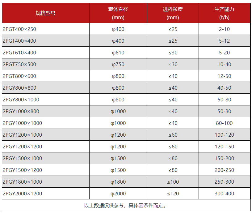 1、250×250,400×250,400×400,610×400,时产2-12吨左右,属于小型瓜米石破碎机。